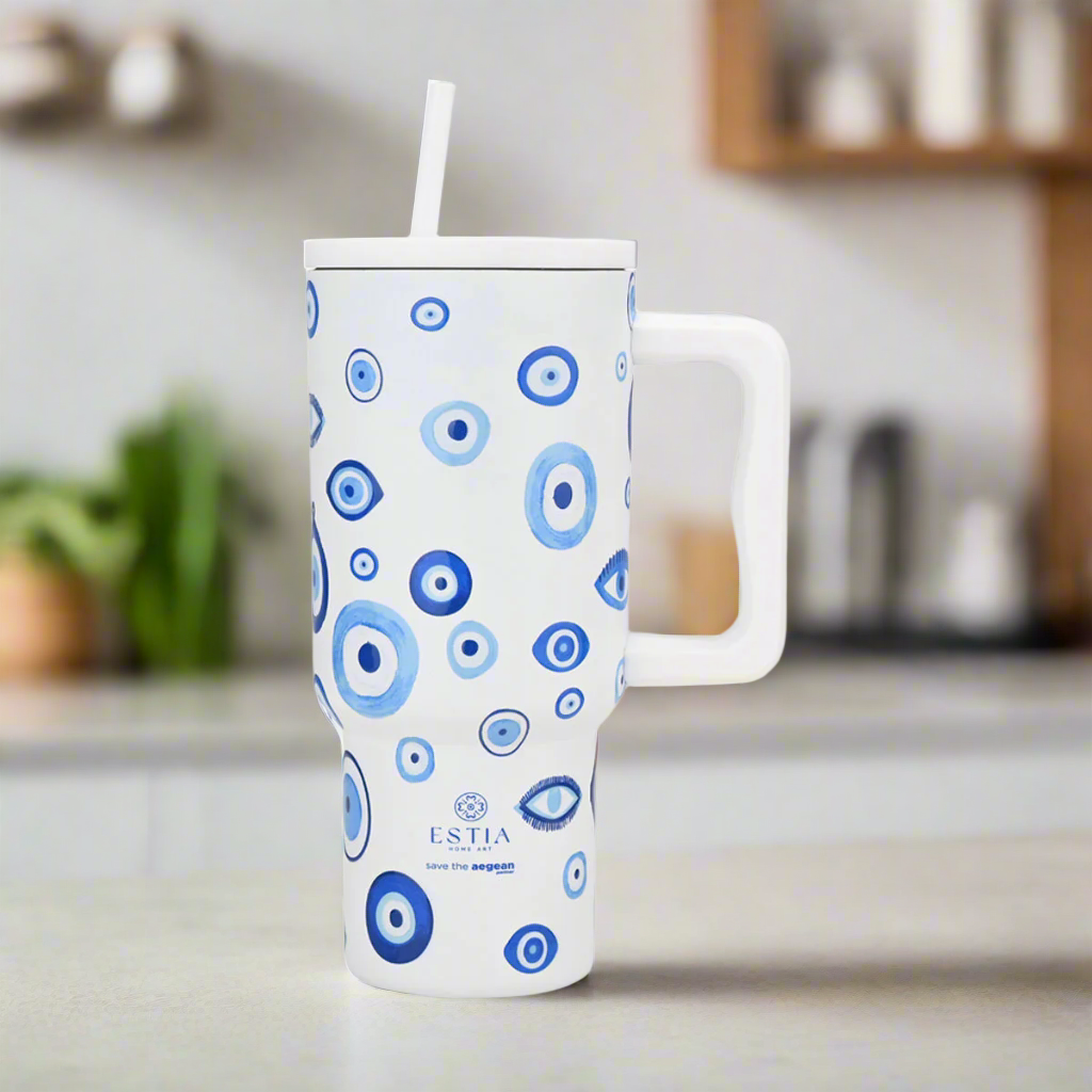 Estia Straw Tumbler XL Save The Aegean Ποτήρι Θερμός με Καλαμάκι Series 3 - 900ml